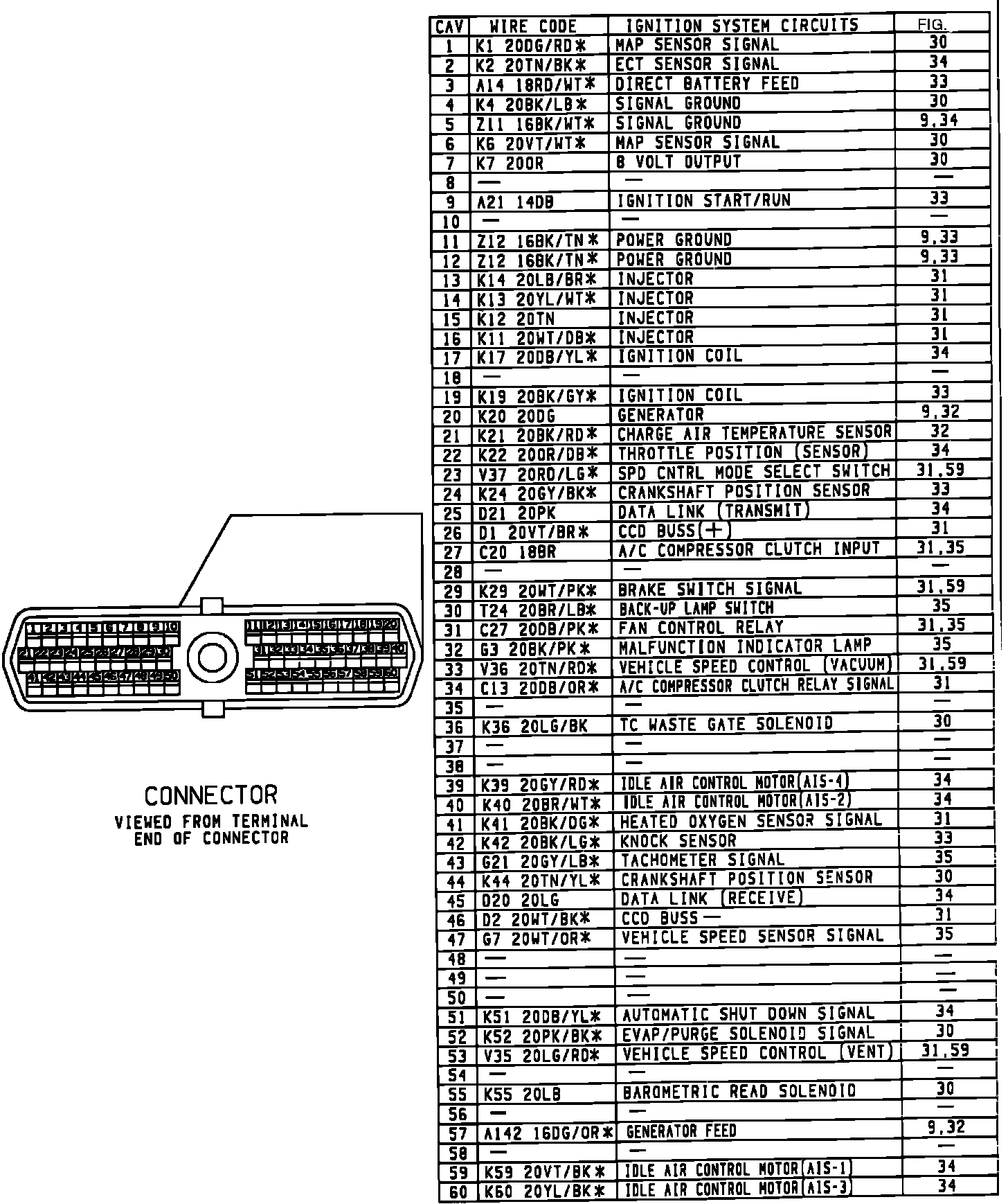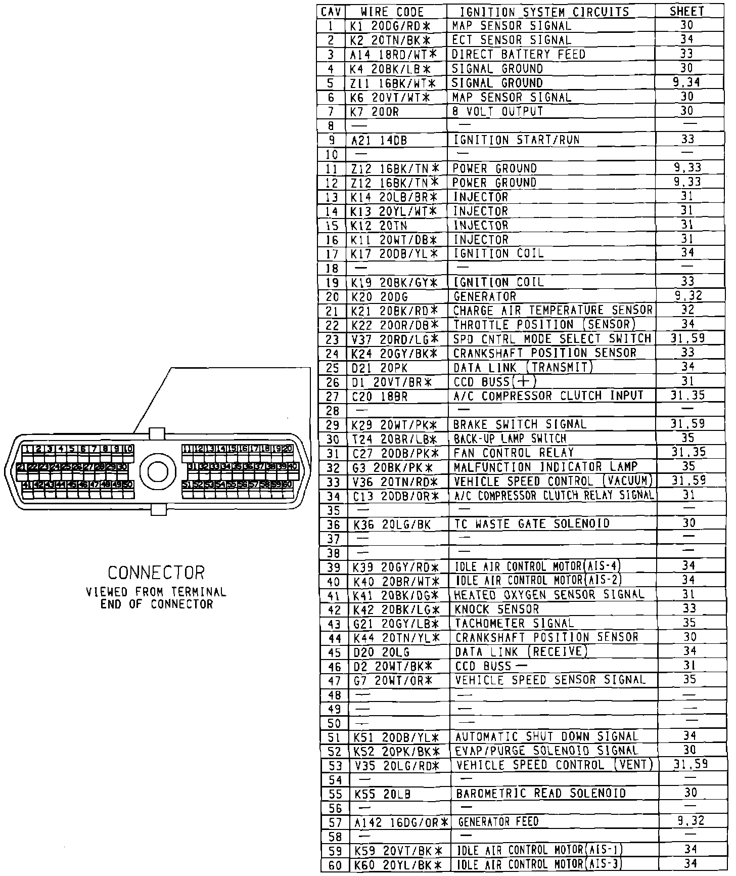 Powertrain Control Module (PCM I) Connector Pin Out: