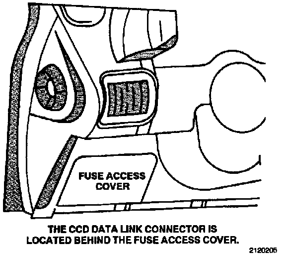 The CCD bus Data Link Connector is located on the drivers side of the passenger compartment, behind the fuse access cover.