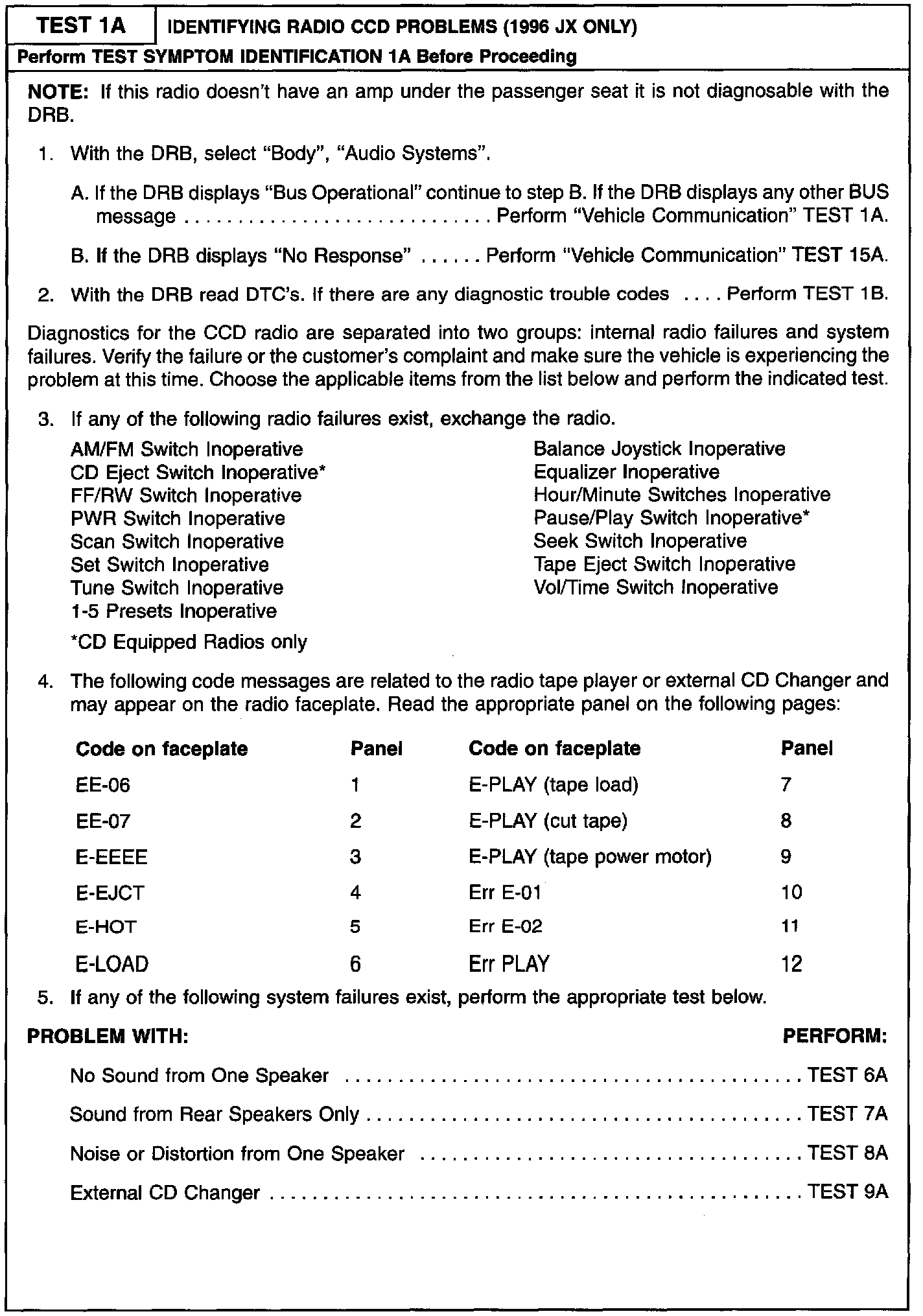 1A Identifying Radio CCD Problems (1996 JX Only)
