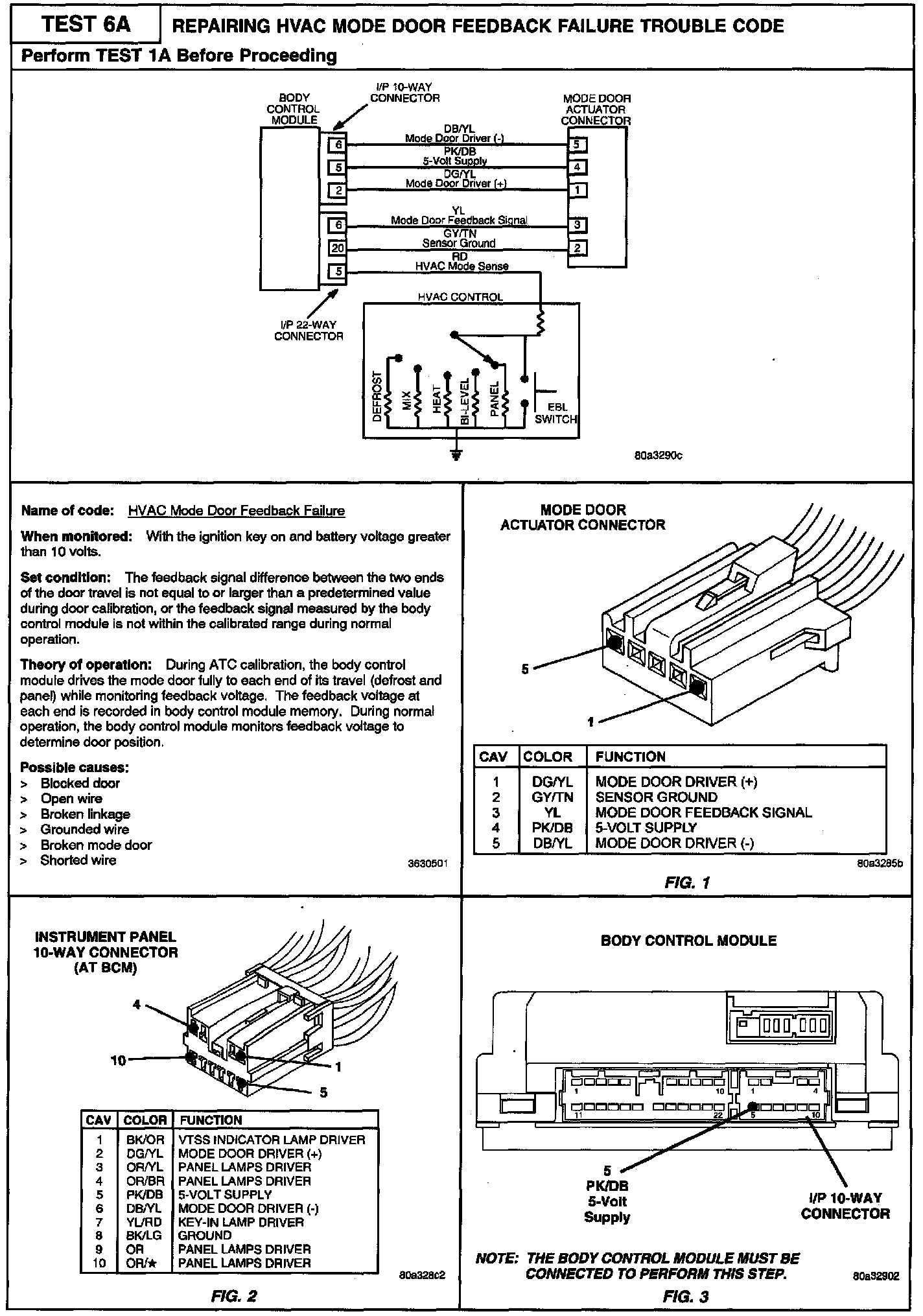 6A Repairing HVAC Mode Door Feedback Failure Trouble Code