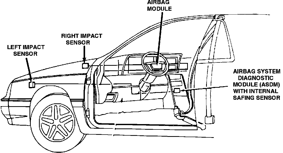 The airbag system is designed to provide increased driver and passenger protection if the vehicle is involved in a front-end collision. The system is most effective when used in conjunction with the seat belt system. Currently, Chrysler Corporation uses two types of airbag control modules. The ASDM system is a mechanically-triggered system utilizing two front impact sensors and a sensor inside the module. The AECM is an electronically-triggered system that used only its own internal electronic sensor to trigger the airbags. The JA and JX Bodies used only the AECM system.