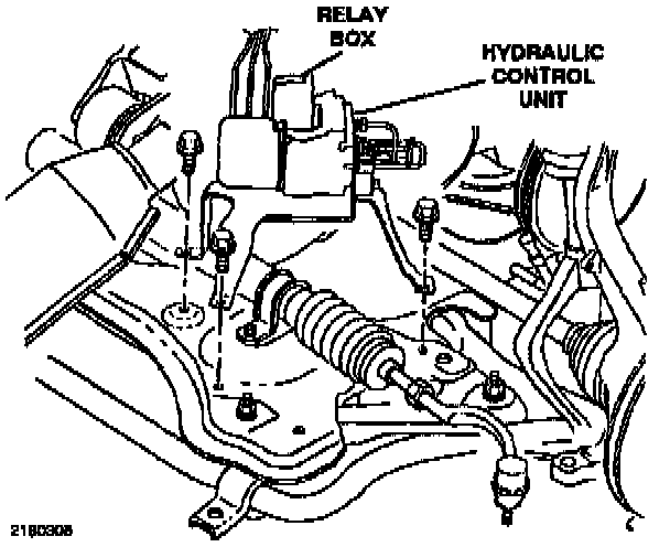 The Hydraulic Control Unit is located on the right side above the steering rack.