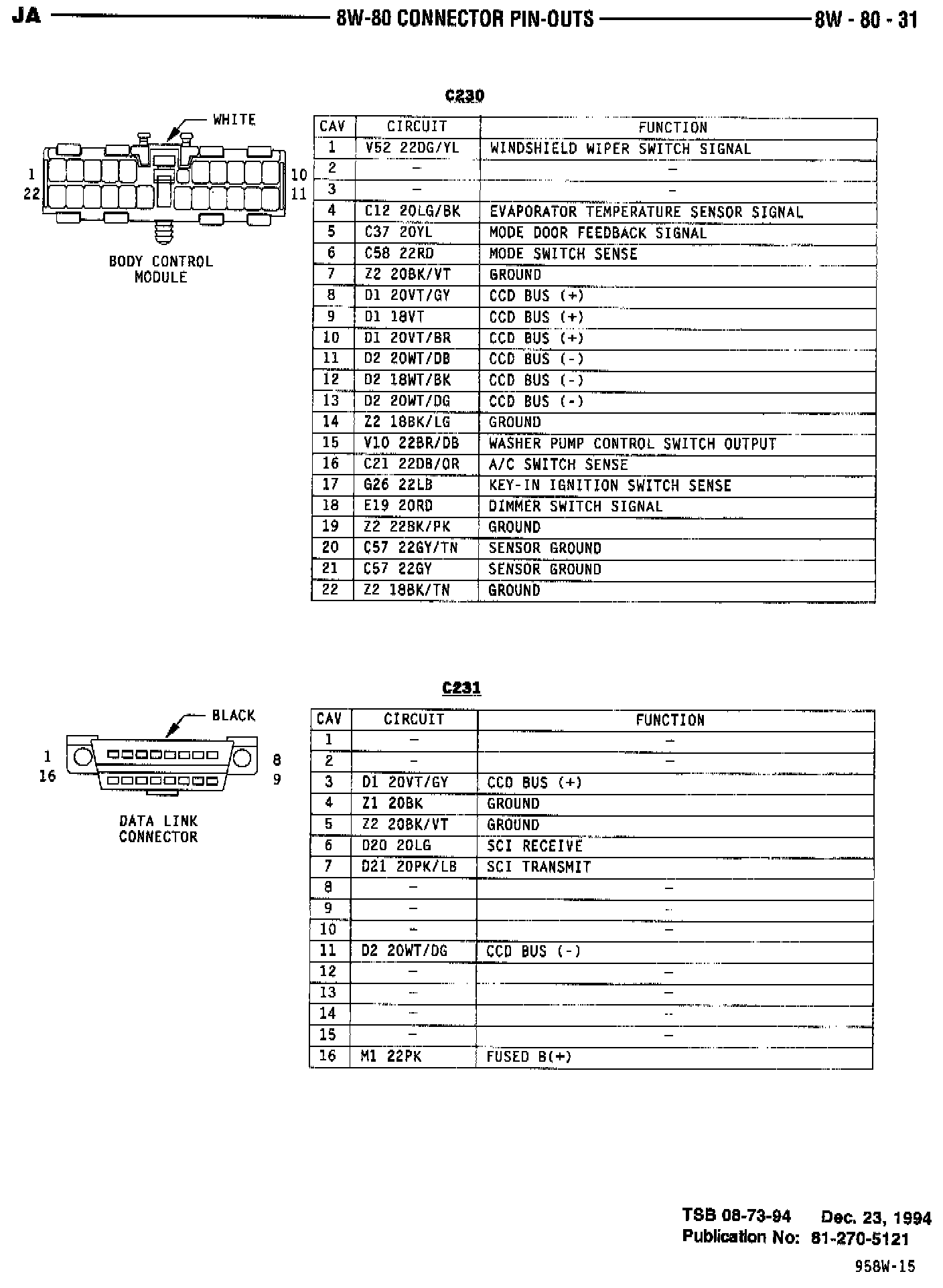 1995 81-270-5121 8W-30-10, 8W-31-10, Data Link