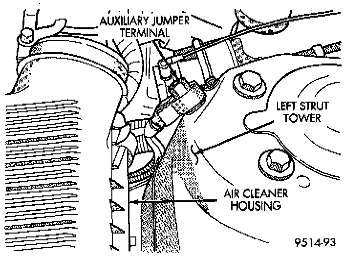 There is an auxiliary jumper terminal located on the left strut tower.