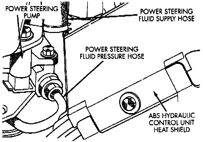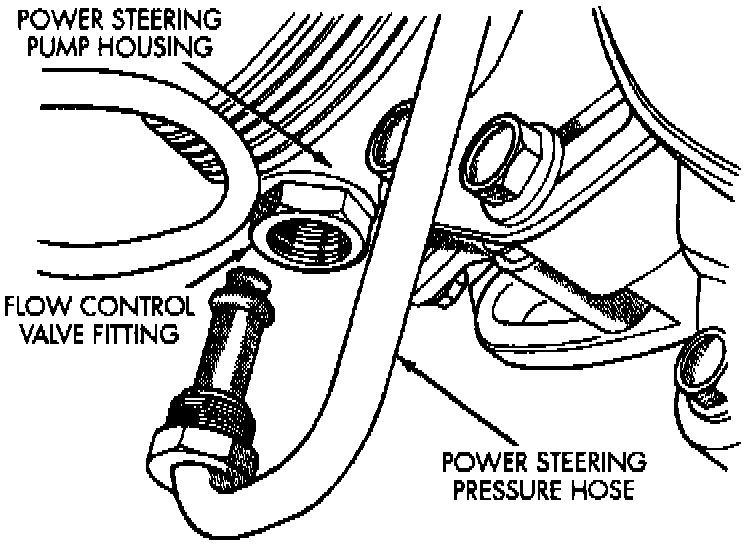 1. Remove power steering fluid pressure hose from power steering pump pressure fitting.