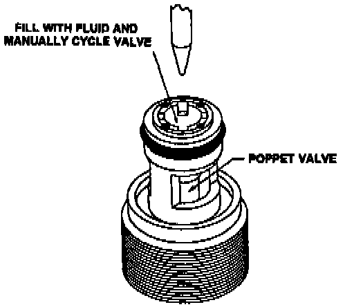 20. While holding the top threaded end of the solenoid up, fill the top section with power steering fluid and manually cycle the valve inside ten (10) times to release all the trapped air under the valve. The valve spring resistance will change as the air is exhausted and the valve is dampened by the fluid.