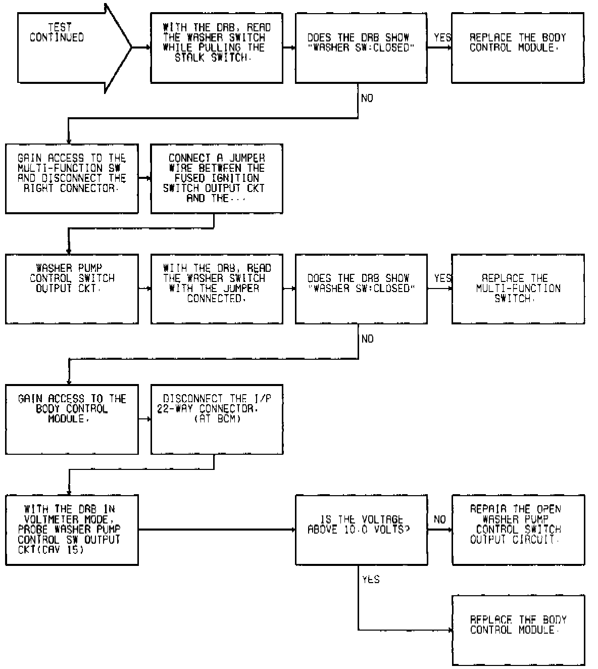 Test 109A Inoperative Wiper Wash Function