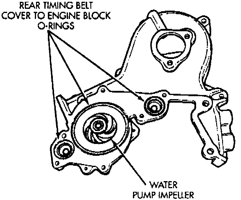 6. If right side timing belt cover is removed, there are O-rings located behind it for water pump passages.