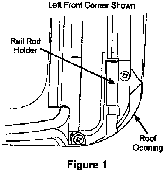 5. Manually move both sunroof guide assemblies rearward by pushing on the guide tab. Remove both right and left rail rod holders (Figure 1).