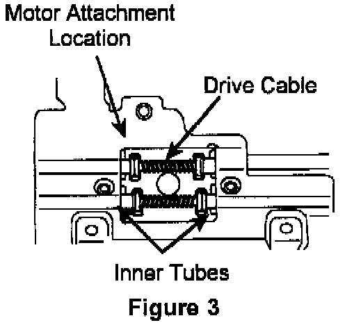 10. Insert the lubricated drive cables into their tubes. Make sure the cables line up with the inner tubes when they pass by the motor attachment point (Figure 3).