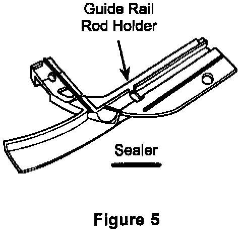 13. Clean the inner portion of the guide rail rod holder and apply a small bead of silicone sealer P/N 04318025 as shown in figure 5.