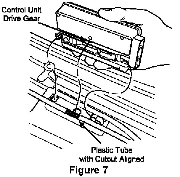 IF THE TUBES REQUIRE RELOCATION, DO NOT TWIST THE TUBE THAT COMES INTO CONTACT WITH THE CONTROL UNIT DRIVE GEAR. IF THIS TUBE COMES OUT OF POSITION, IT CAN CAUSE A RATCHETING SOUND AFTER ASSEMBLY AND/OR THE CONTROL UNIT TO COME OUT OF TIME (FIGURE 7).