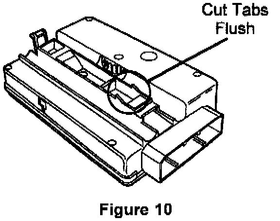 19. Using a sharp utility or modeling knife, shave off the two locating tabs on the top side of the new control unit P/N MR199789 (Figure 10).
