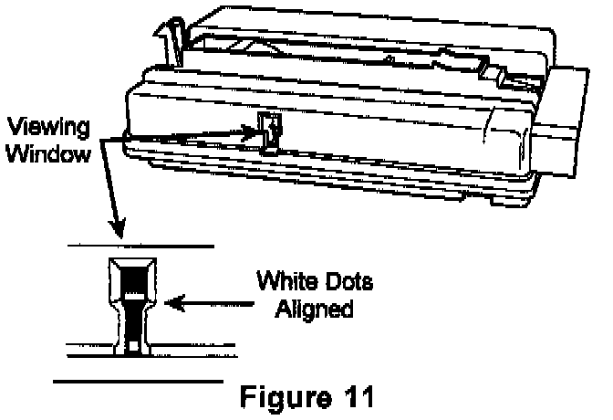 20. Check to see if the white dots are lined up in the top and bottom viewing window of the control unit. If they are, it indicates that the control unit is properly timed. If not, turn the gear located on the top side of the control unit until the dots are lined up (Figure 11).