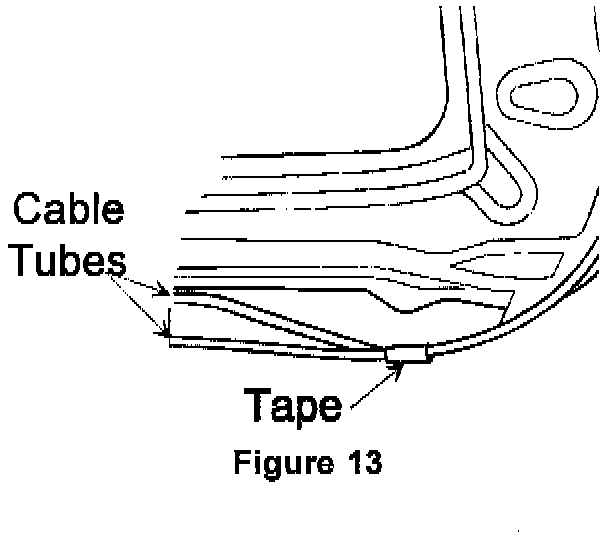 22. Position the control unit cable tube so it will locate into the control unit gear. Tape can be wrapped around the cable tubes at the corner to help hold the tube in position (Figure 13).