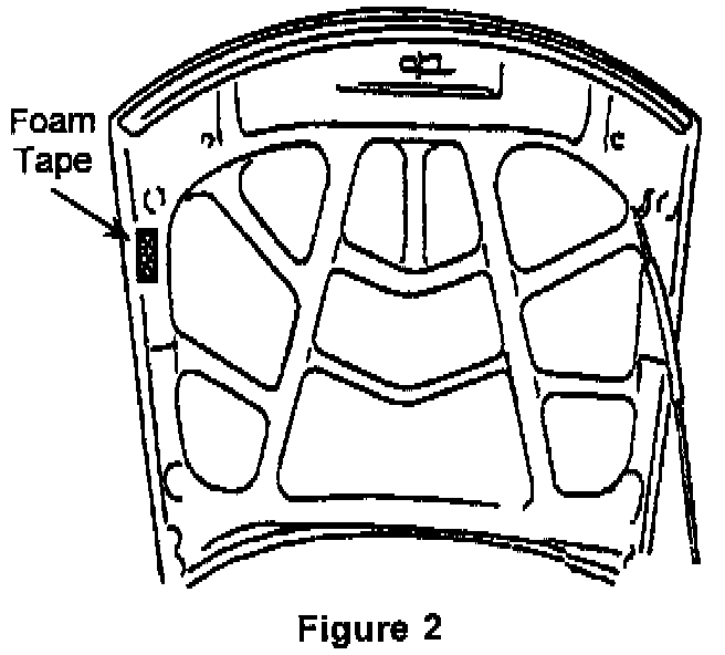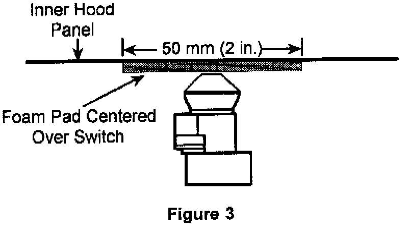 2. Apply a 50 mm (2 in.) long piece of 3M Vinyl Foam Tape P/N 03320 to the inner hood switch contact area (Figure 2). Make sure the tape is centered over the switch contact area when the hood is closed (Figure 3).