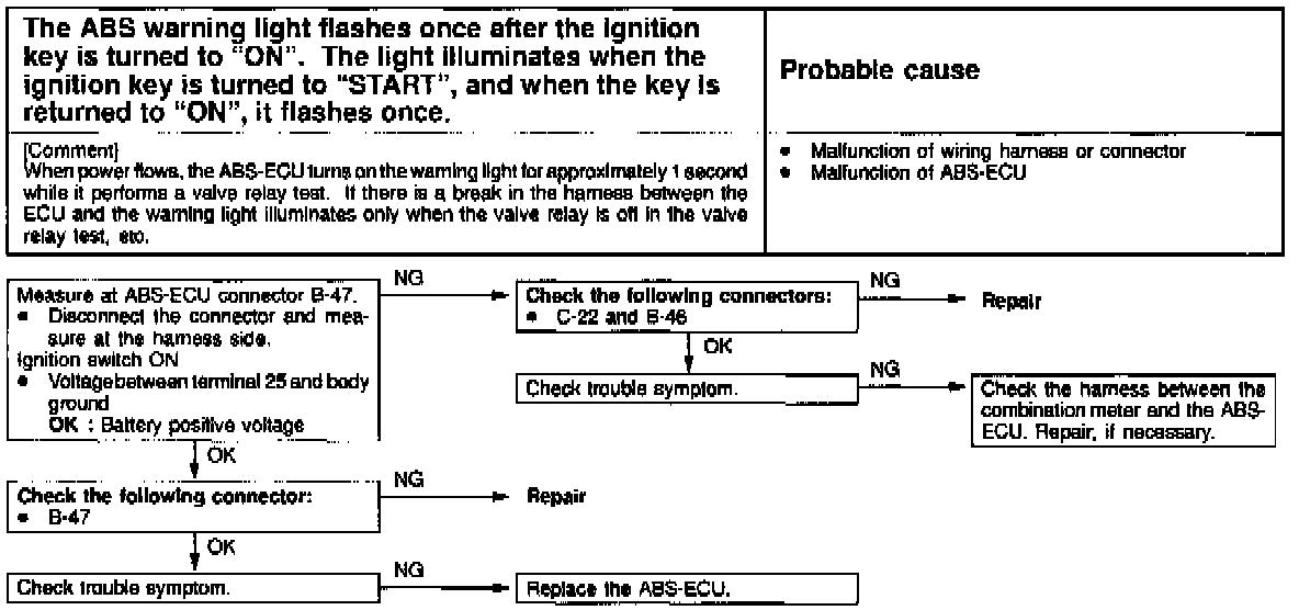 Fig 45 Test 6: ABS Warning Lamp Flashes Once After Ignition Key Is Turned On: