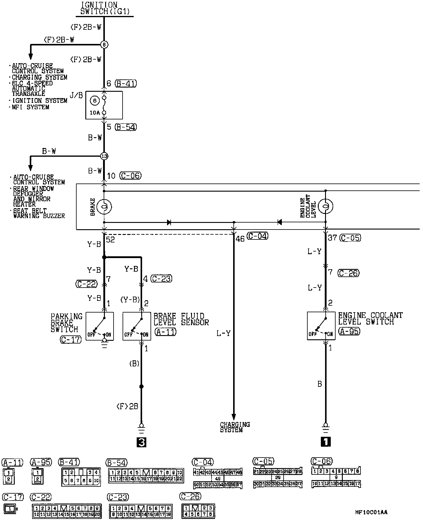 Brake Warning, Engine Coolant Level Warning, Oil Pressure Warning And Low Fuel Level Warning Light Circuit (Part 1 Of 2):