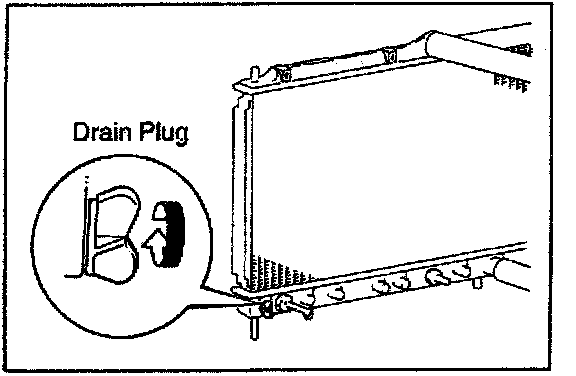 Check the cooling system parts, such as radiator; heater, and oil cooler hoses, thermostat and connections for leakage and damage.1. Drain the engine coolant by removing the drain plug and then the cap.