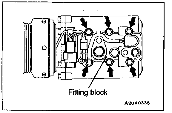 1. Remove the compressor fitting block.