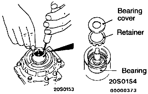 1. Use a pointed tool such as an awl to remove the bearing cover and retainer.