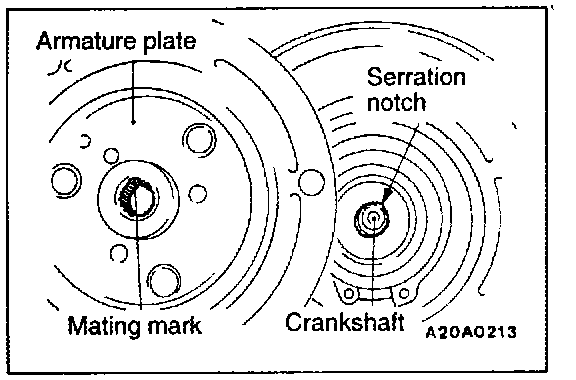 Align the mating mark of the crankshaft spline and the mating mark of the armature plate, and then fit them together.