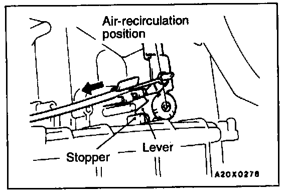 8. Set the lever for the inside/outside air changeover on the heater control assembly to the air-recirculation position.