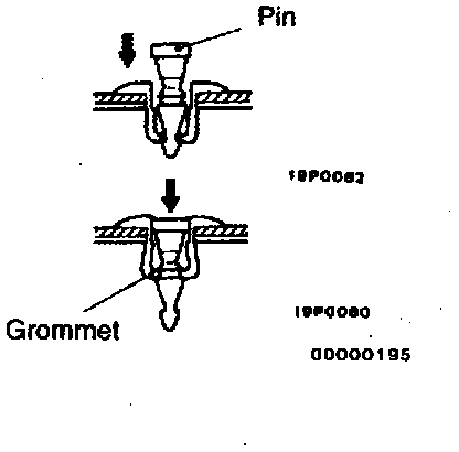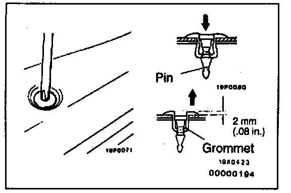 CAUTION: Do not push the pin inward more than necessary because it may damage the grommet, or the pin may fall in, if pushed too far.