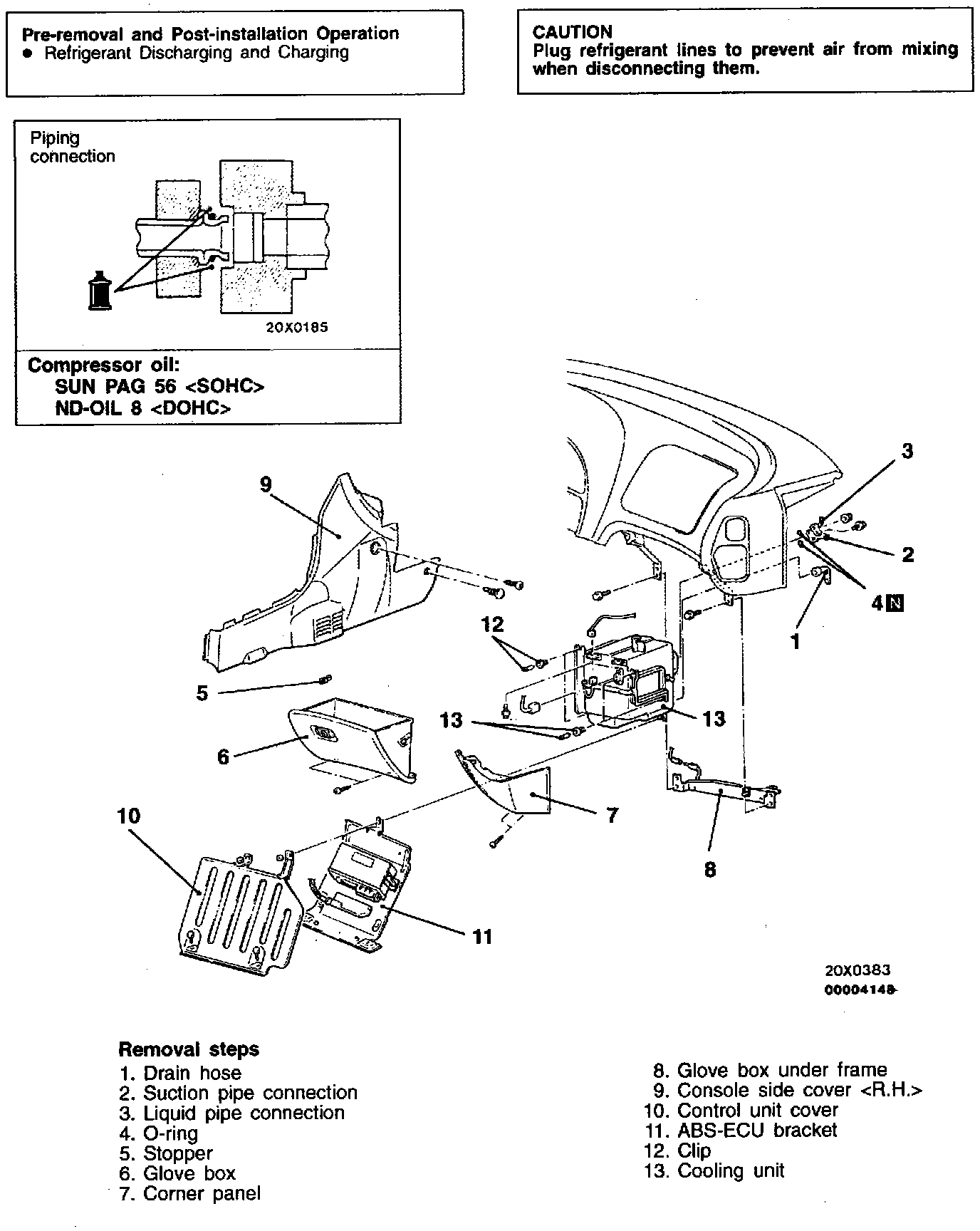 When replacing the cooling unit with new one, refill the evaporator with a specified amount of compressor oil.