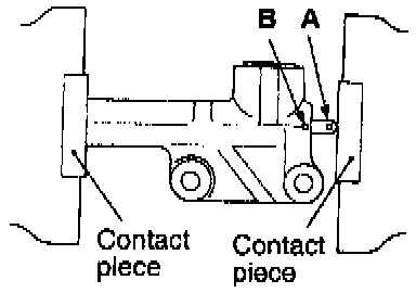 (1) Use a press or vise to compress the push rod of the auto tensioner as slowly as possible. Then align pin hole A of the push rod with pin hole B of the tensioner cylinder.