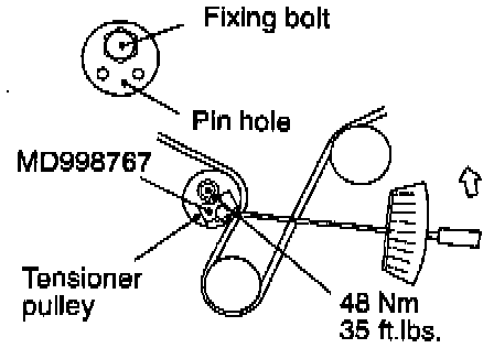 Caution When tightening the bolt, make sure that the tensioner pulley shaft doesn't rotate with the bolt.
