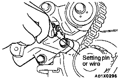 NOTE Even if the setting pin or wire cannot be easily inserted, it is satisfactory if the auto tensioner rod projection is within the standard value.