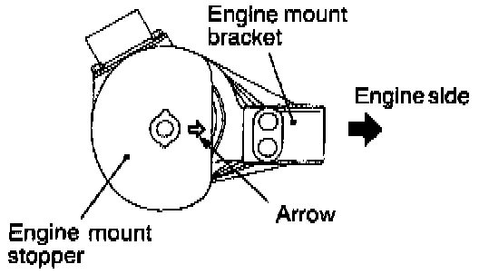 Attach the engine mount bracket so that the arrow mark on the engine mount stopper is in the direction as shown in the illustration.