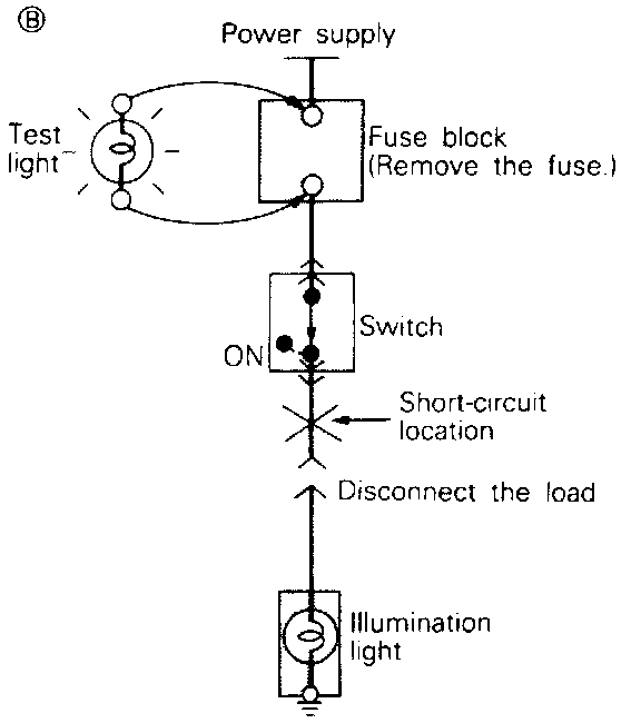 A circuit consists of the power supply, switch, relay, load, ground, etc. There are various methods to check a circuit including an overall check, voltage check, short-circuit check and continuity check. Each of these methods is briefly described.