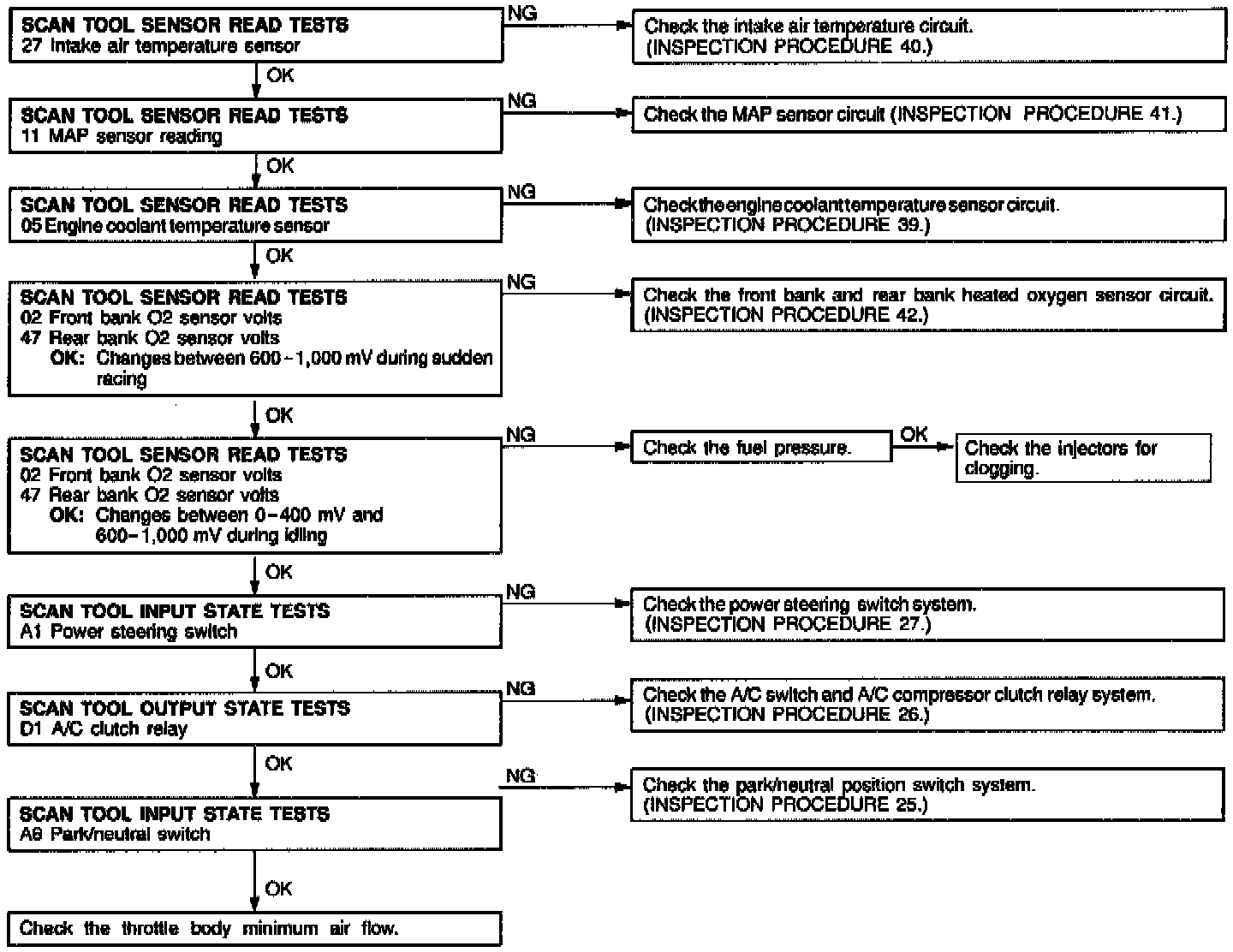 Scan tool: Inspection when engine stalls when the engine is warm and idling.