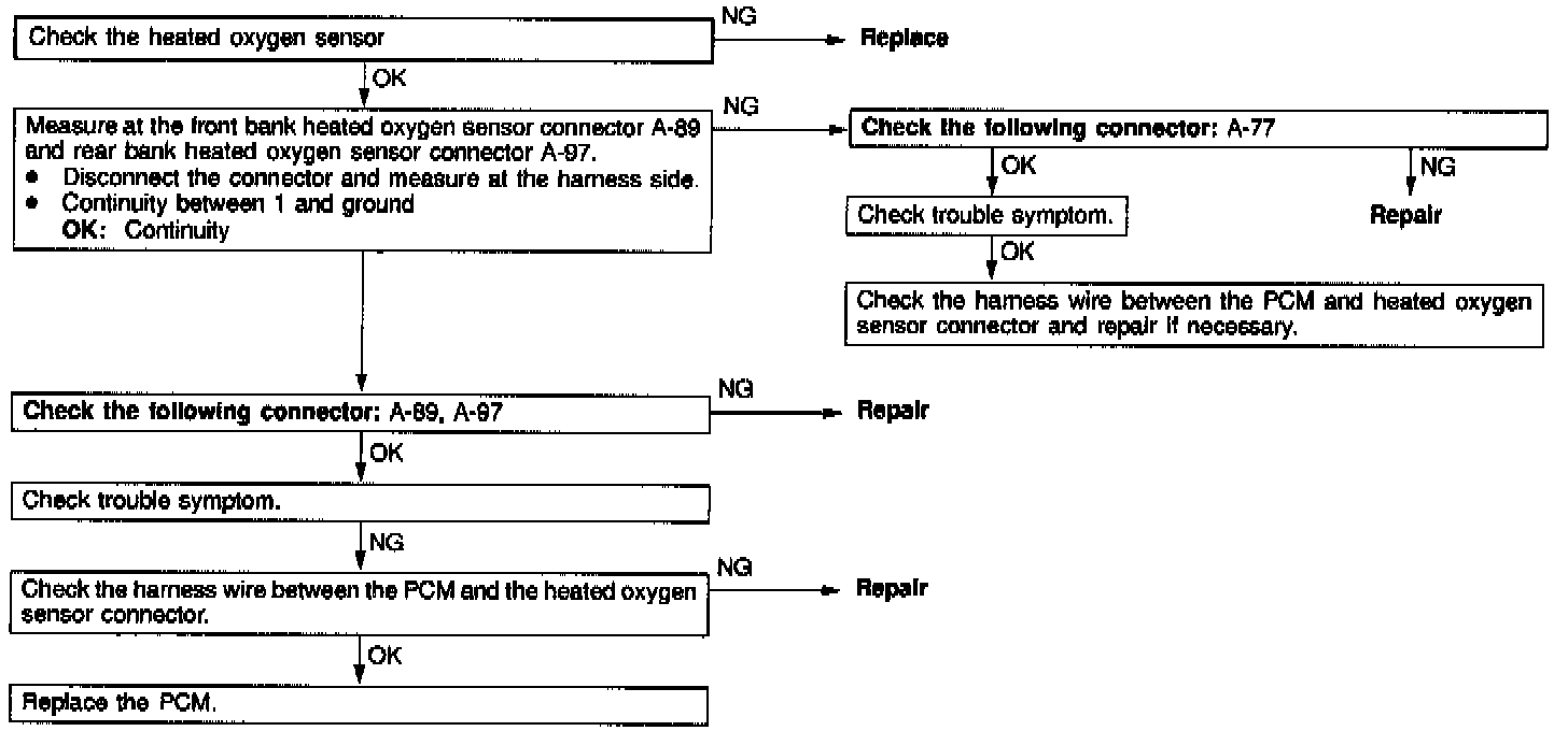 Check the front bank and rear bank heated oxygen sensor circuit.