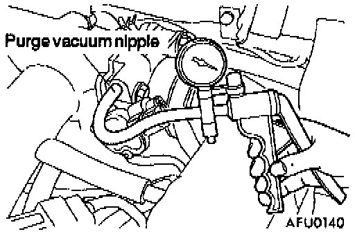 1. Disconnect the vacuum hose from the throttle body purge vacuum nipple and connect a hand vacuum pump to the nipple.