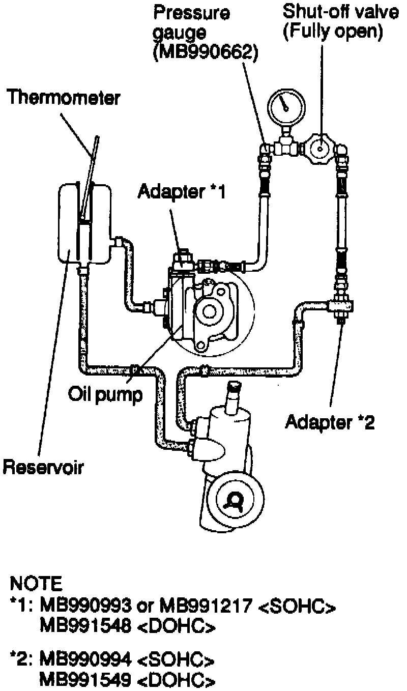 1. Disconnect pressure hose from oil pump, then connect no-load condition pressure test special tools.