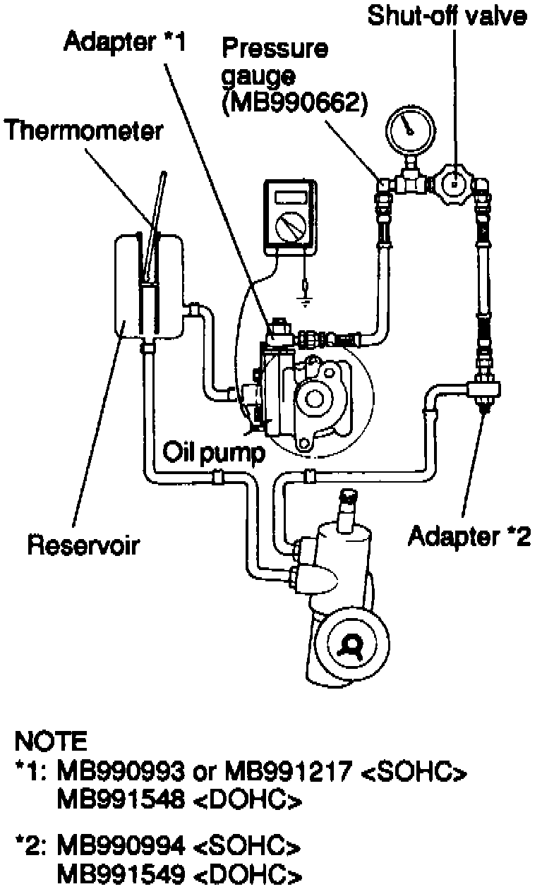1. Disconnect pressure hose from oil pump, then connect power steering pressure switch test special tools.