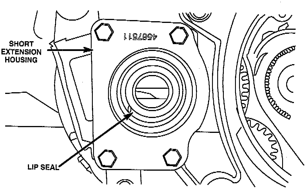 Some applications require this short aluminum extension housing. The part number for the new housing is 4567337, while the old part number is 4567412.