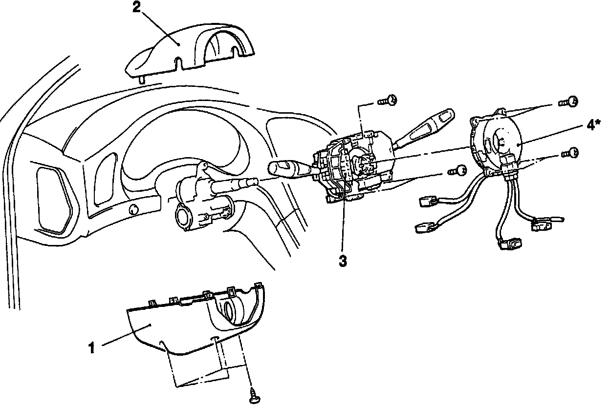Note: Do not remove parts marked with * from the column switch except when removal is absolutely necessary.