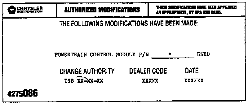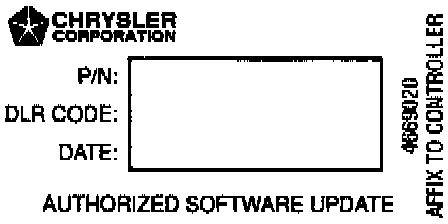 9. Type the necessary information on the "Authorized Software Update Label" and attach it to the PCM and cover the label with a clear plastic sticker.