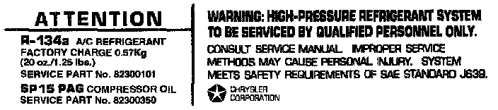 Refrigerant OilUnderhood Label: