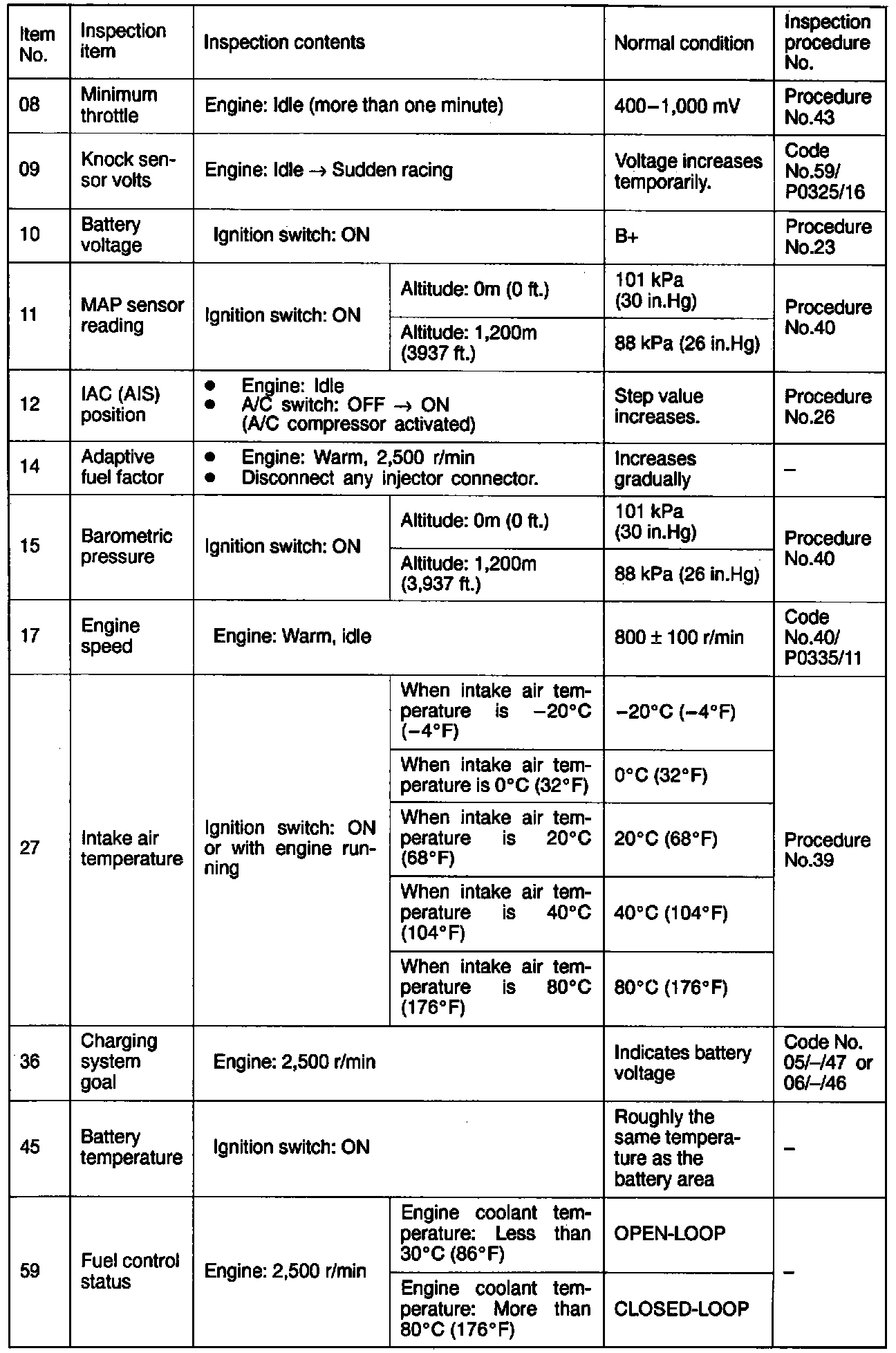 Sensor Read Reference Table (Part 2 Of 3):