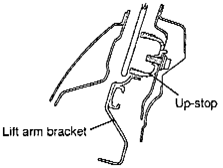 5. Push the up-stops firmly against the lift arm bracket of the regulator, and then install the bolts. Dimensions a and d in step 4 should be maintained at this time.