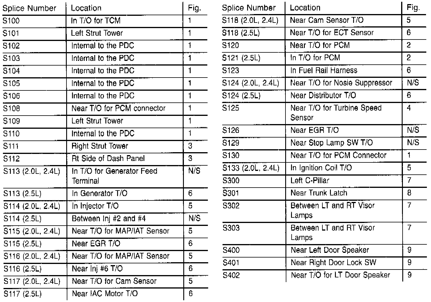 Splice Locations S100 To S402: