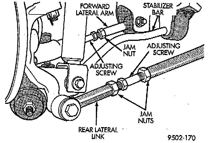 CAUTION: Do not attempt to straighten or repair a lateral link. Do not apply heat to the lateral link adjusting screws or to the jam nuts, when loosening or adjusting the lateral links.