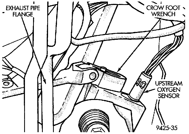 3. Remove sensor using an oxygen sensor crow foot wrench such as Snap-On tool YA8875 or equivalent (Fig. 88).