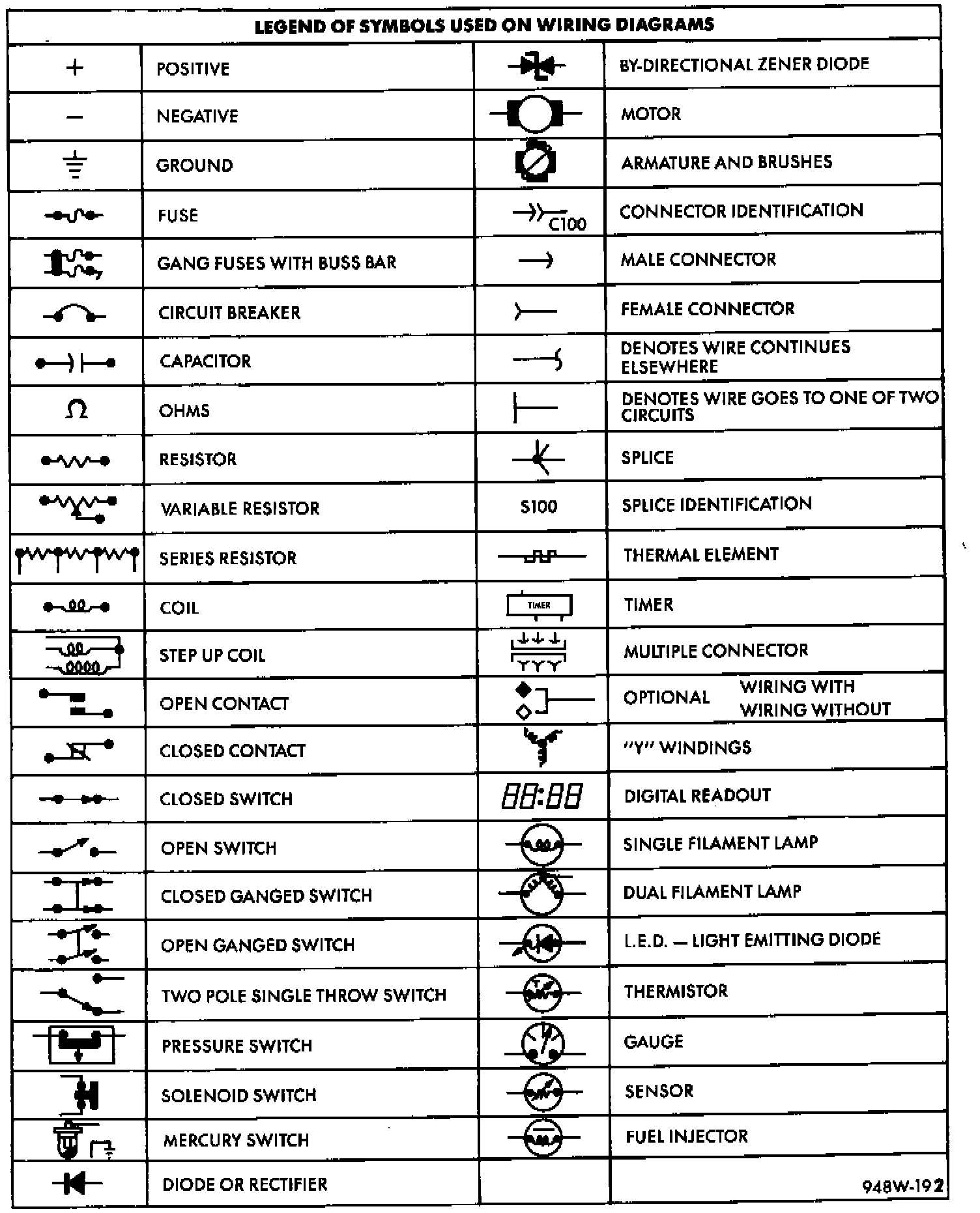 Various symbols are used throughout the Diagrams. These symbols can be identified by referring to the Symbol Identification chart.