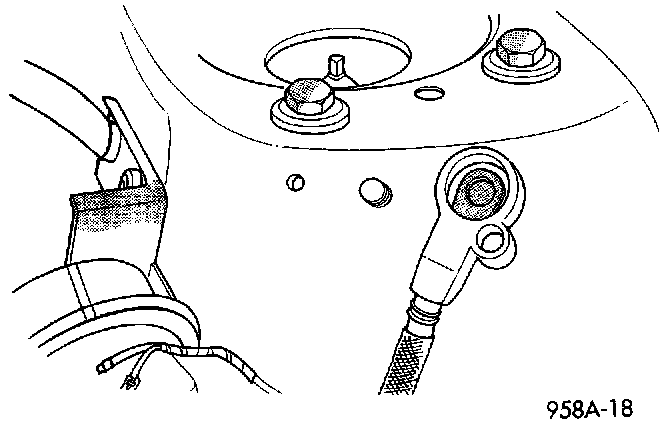 1. Disconnect battery negative cable from remote negative terminal on shock tower .